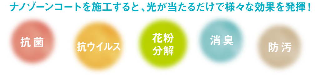 ナノゾーンコートを施工した表面は長時間持続する光触媒コーティングされます。