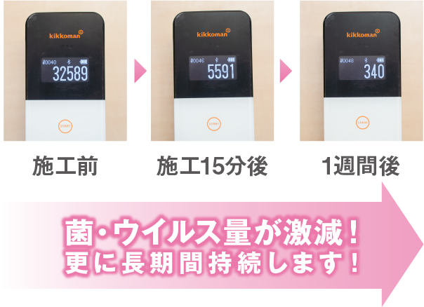 ナノゾーンコートは一度の施工で、半永久的(※1)に、菌・ウイルスを浄化。
